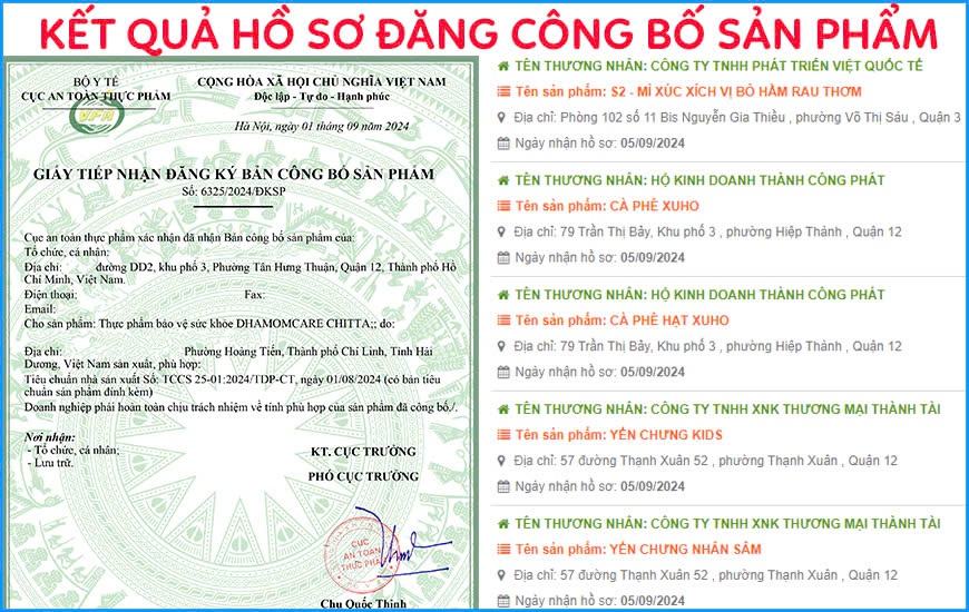 • Đối với khách hàng tự công bố sản phẩm: Thông tin sản phẩm đã được đăng tải trên website của cơ quan chuyên trách, Trường Thuận Đức sẽ hướng dẫn khách hàng cách tra cứu thông tin để xác nhận thông tin về việc Công bố sản phẩm.
